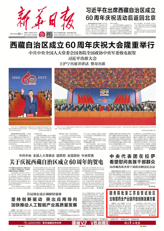 批復明確,《方案》實施以習近平新時代中國特色社會主義思想為指導,深入貫徹黨的二十大和二十屆二中、三中全會精神,堅持穩中求進,完整、準確、全面貫徹新發展理念,構建新發展格局,推動高質量發展,統籌發展和安全。以高水平開放為引領、制度創新為核心,開展首創性、集成式探索,目標是將中國(江蘇)自由貿易試驗區打造成為具有世界影響力的生物醫藥產業集聚地和更具國際競爭力的創新發展高地。