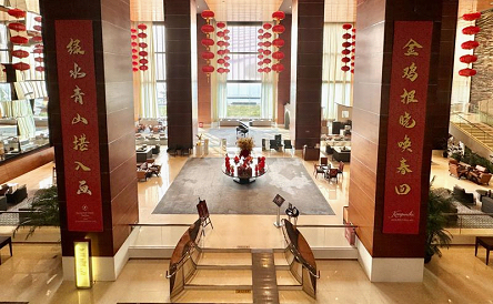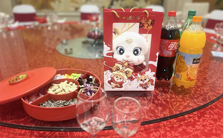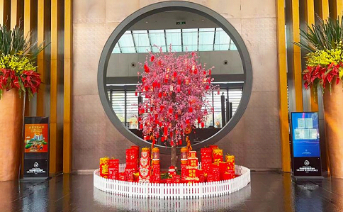 Jinji Lake Grand Hotel decorated its lobby with Chinese knots, red lanterns and other decorations. Dragon and lion dancing performances were staged, and diverse events were held following folk customs.