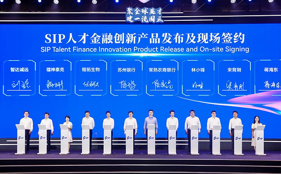 The Talent Introduction Loan (Yin Cai Dai) and One Yuan Loan (Yi Yuan Dai), which SIP provides in collaboration with the Bank of Suzhou and Changshu Rural Commercial Bank, were unveiled to give enterprises and talents a helping hand in financing. The first borrowers signed agreements with the lenders.