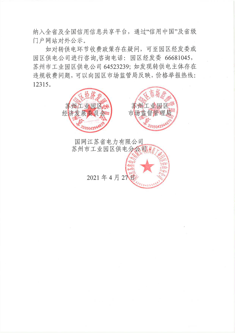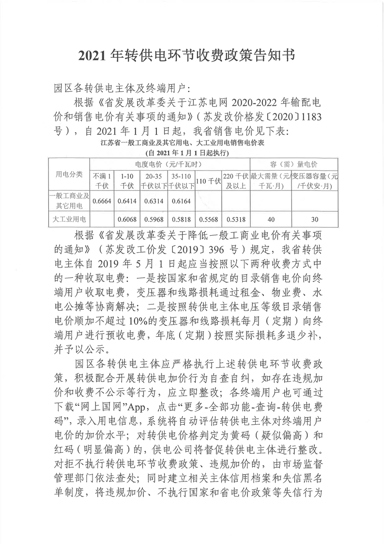 2021年轉(zhuǎn)供電環(huán)節(jié)收費(fèi)政策告知書(shū)