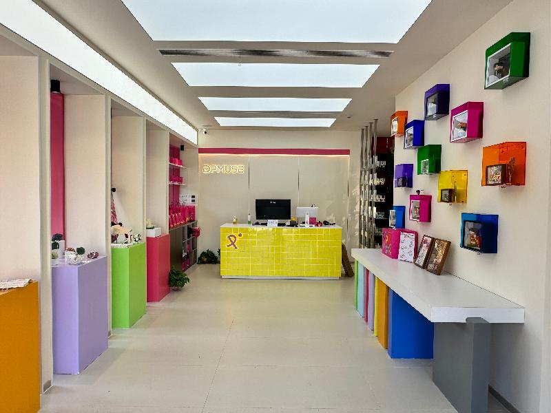 在重云巷入口不遠處,采用多巴胺配色裝修的DPMUSE潮玩商店十分抓人眼球。這是一個從日常熱愛和青年態度中生長出來的品牌,它的名字也承載著雙重內核——DualPassion(多重熱愛)與DramaParadise(玩心樂園)。“我們通過色彩的搭配、大膽的設計,將抽象的‘熱愛’具象化,使產品不僅是物品,更是承載情感與記憶的‘關系禮物’——無論是運動搭子、二次元同好,還是鏟屎官社群,都能在這里找到屬于自己圈層的身份符號。”DPMUSE主理人朱逸琳介紹道。