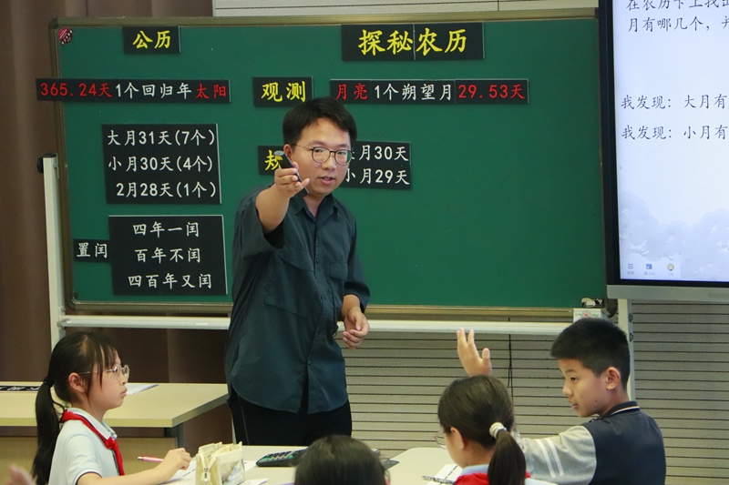 青劍湖小學(xué)陳柯老師執(zhí)教的《探秘農(nóng)歷》將數(shù)學(xué)與科學(xué)相融合,引導(dǎo)學(xué)生遷移公歷學(xué)習(xí)的經(jīng)驗,以數(shù)學(xué)視角探索農(nóng)歷的形成,讓學(xué)生在感受中華傳統(tǒng)文化獨特魅力的同時,深化了對數(shù)學(xué)知識的理解與運用。