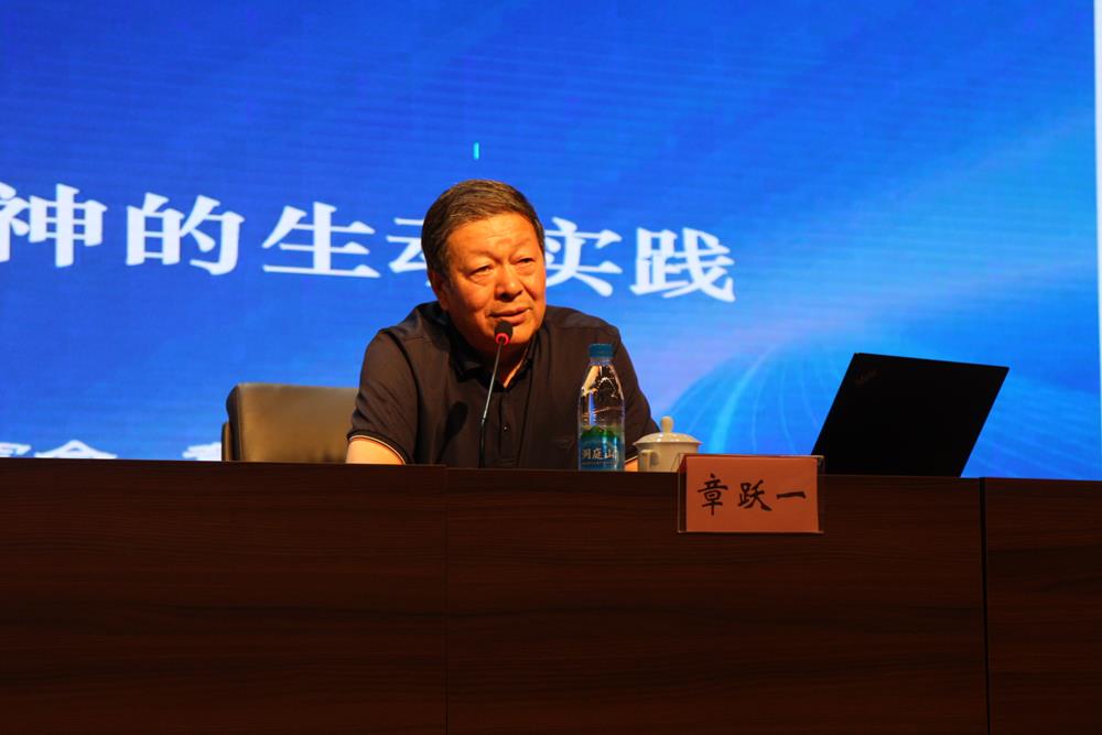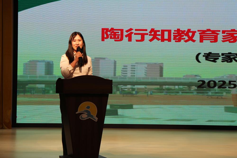 活動最后,江蘇省陶行知研究會常務副會長兼秘書長章躍一先生給與會老師帶來了一場題為《陶行知教育家精神的生動實踐》的精彩講座。憑借詳實的歷史資料和鮮活的案例,章躍一先生細致地呈現了陶行知先生的教育理念和實踐,并深刻揭示了其中所蘊含的偉大教育家精神。他深入剖析了“陶行知,教育家精神的光輝典范”,讓聽眾仿佛穿越時空,親身感受到陶行知先生對教育事業的無限熱忱與崇高追求,進而深刻領悟其教育思想的時代價值,以及與當代教育使命的緊密契合。
