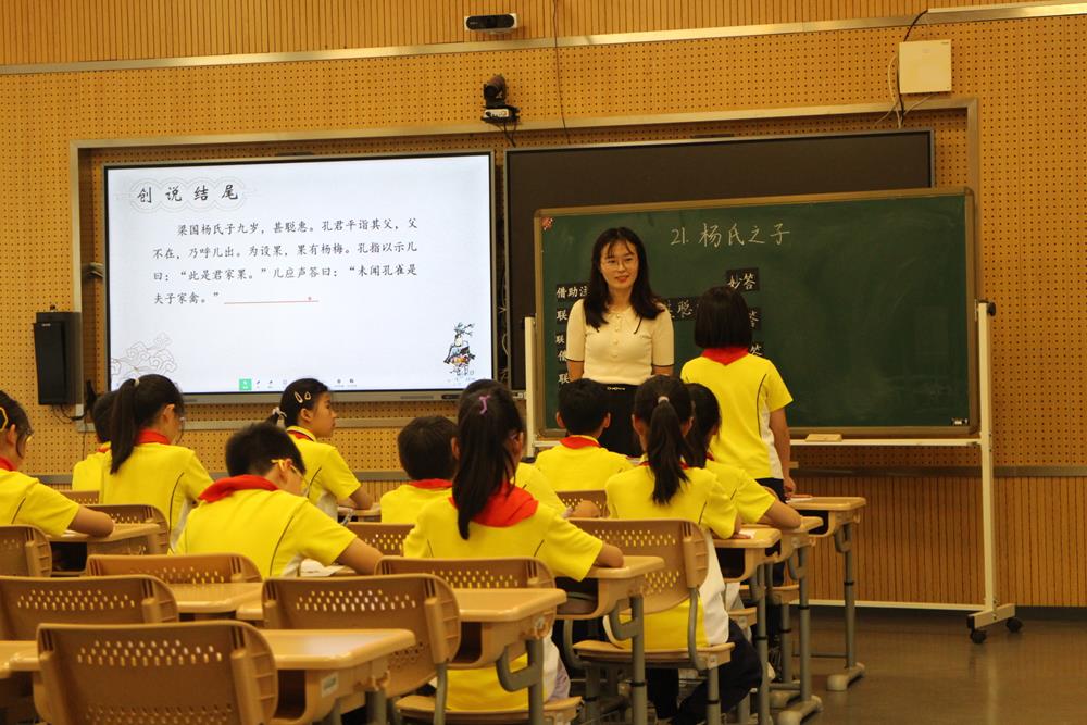 文萃小學羅敏珺老師執教《楊氏之子》一課,以文言文經典文本為載體,通過趣味導入激活學生思維,借助字詞解析、情境演繹、小組思辨等環節,帶領學生領略楊氏之子應答的機智與語言藝術,感悟古人的智慧與禮儀。注重讀寫結合,在解讀文本后引導創作類似機智對話,鍛煉學生語言運用能力,激發對文言文學習的濃厚興趣。